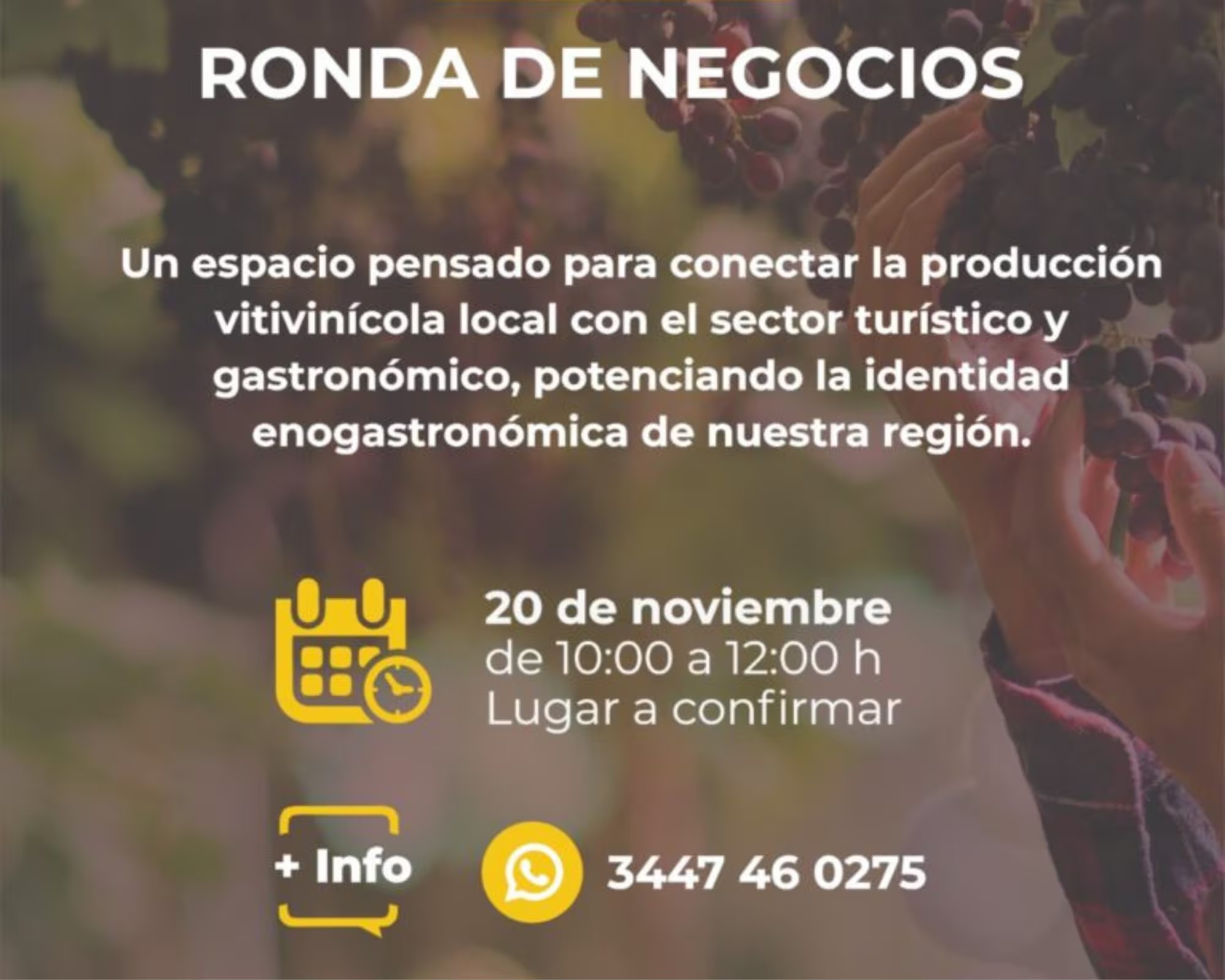 La ciudad de Colón refuerza su identidad enogastronómica con una Ronda de Negocios que reunirá a bodegas locales, prestadores turísticos y gastronómicos para generar nuevas alianzas y potenciar el turismo del vino en la región del río Uruguay.