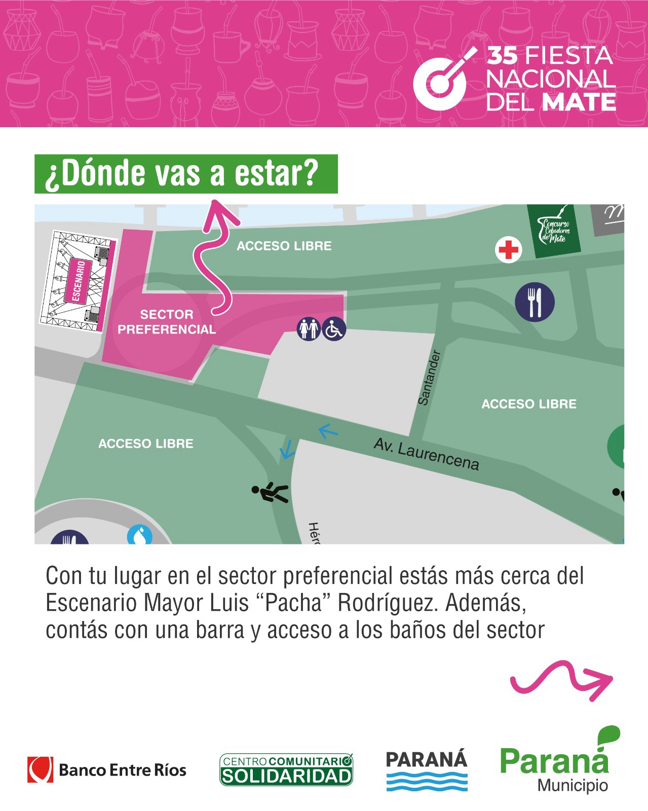La Municipalidad de Paraná anunció la ampliación del sector preferencial para la 35ª edición de la Fiesta Nacional del Mate, que se realizará el 6 y 7 de febrero en la Plaza de las Colectividades. La medida responde a la alta demanda de entradas, que ya están disponibles en entradauno.com, con financiación en 3 cuotas sin interés para usuarios de Banco Entre Ríos y Banco Santa Fe.
