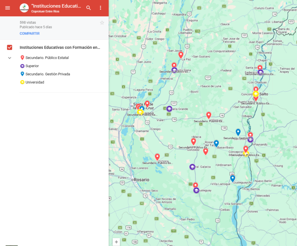 El Consejo Provincial de Turismo de Entre Ríos (COPROTUER) lanzó un mapa interactivo que reúne a las instituciones educativas de la provincia con programas de formación en turismo. La iniciativa apunta a facilitar el acceso a la oferta académica y promover la articulación entre actores del sector.